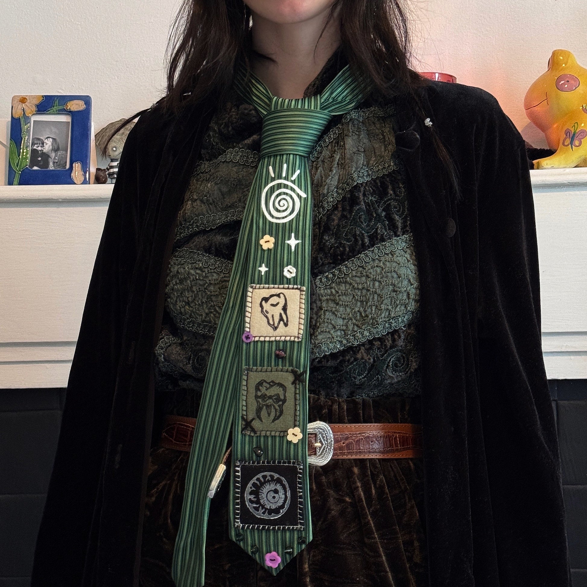 Reworked one of a kind patchwork green tie!